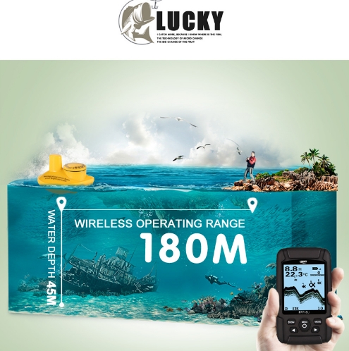 - Максимальная дистанция, на которой работает в радио режиме эхолот Lucky Fish Finde rFF718LiCD - 180 метров;