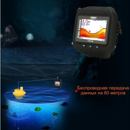 Наручный беспроводной эхолот для рыбалки Lucky FF-518 может использоваться для всех видов рыбалки: с берега, для зимней рыбалки или с лодки. Эхолот способен заменить маркерное удилище при ловле рыбы на новом месте, и сэкономить много времени при поиске бровки и скопления рыбы. С помощью беспроводного наручного эхолота выполненного в виде часов можно узнать о глубинах в водоеме, наличии рыбы, глубине на которой стоит рыба и температуре воды. При этом эхолот FF-518 очень удобно держиться на руке не мешая приятному занятию.