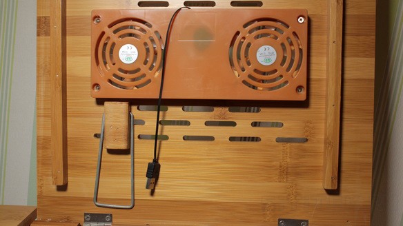 Регулируемая часть столешницы имеет два встроенных вентилятора, которые будут находиться под ноутбуком и смогут обдувать его потоком воздуха. Это обеспечит работу ноутбука без перегрева, что особенно актуально для моделей лэптопов, которые склонны перегреваться, а также при длительной непрерывной эксплуатации ноутбука и при выполнении на нем ресурсоемких задач. Сотрудники нашего сайта www.sititek.ru отмечают, что вентиляторы в столике питаются от USB-порта ноутбука, поэтому никаких подзарядок или замены элементов питания не требуется.
