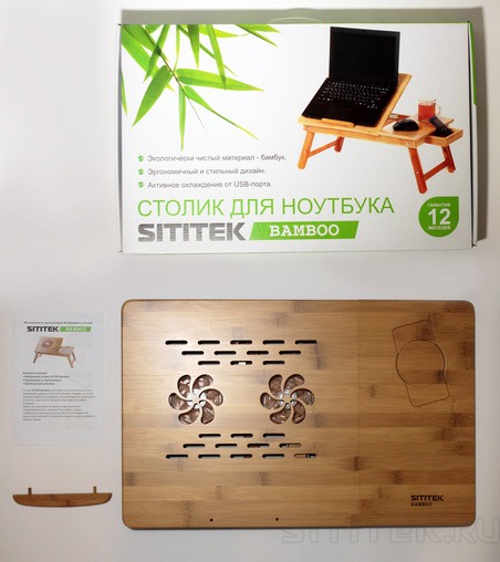 Для питания вентиляторов в столике "SITITEK Bamboo 2" из них выведен кабель с USB-штекером для подключения к ноутбуку